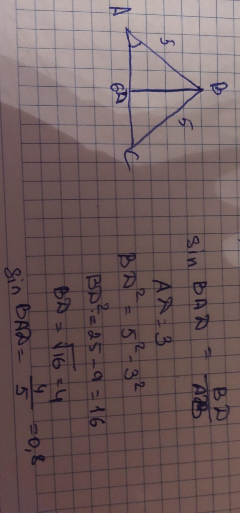 AD = 3, потому что в равнобедренном треугольнике высота является медианой и биссектрисой, значит, делит основание пополам