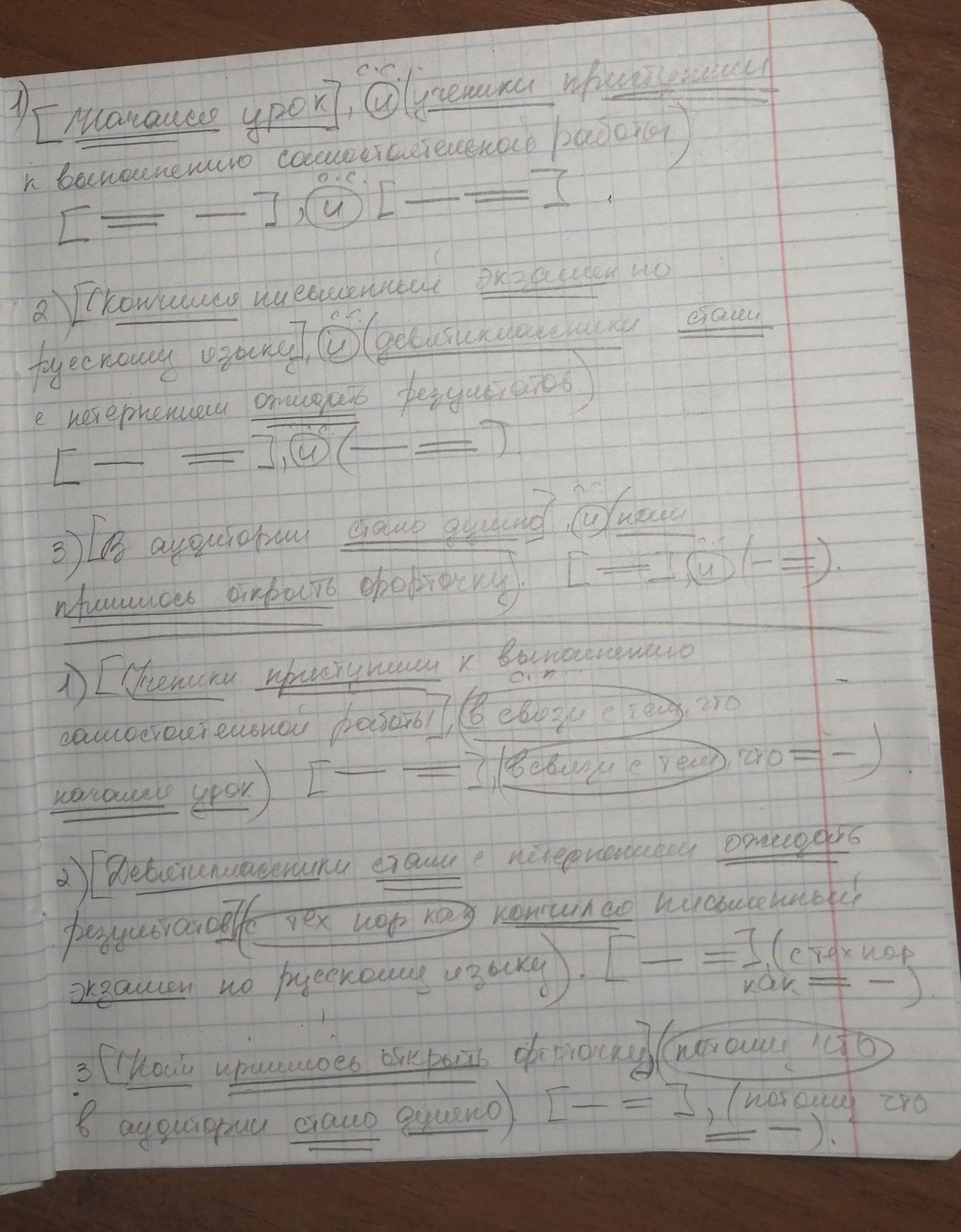 1) Начался урок, и ученики приступили к выполнению самостоятельной работы. 2) Кончился письменный экзамен по русскому языку, и девятиклассники стали с нетерпением ожидать результатов. 3) В аудитории стало душно, и нам пришлось открыть форточку.