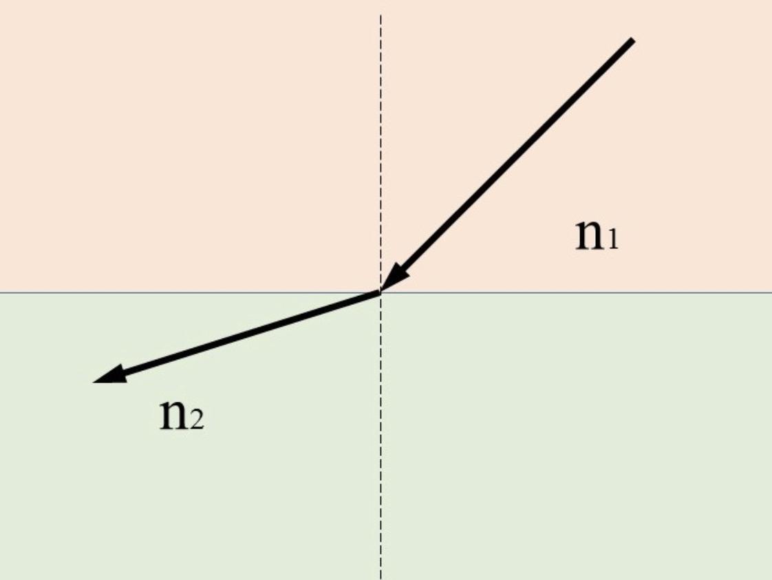 1. Луч переходит из менее плотной оптической среды в более плотную.