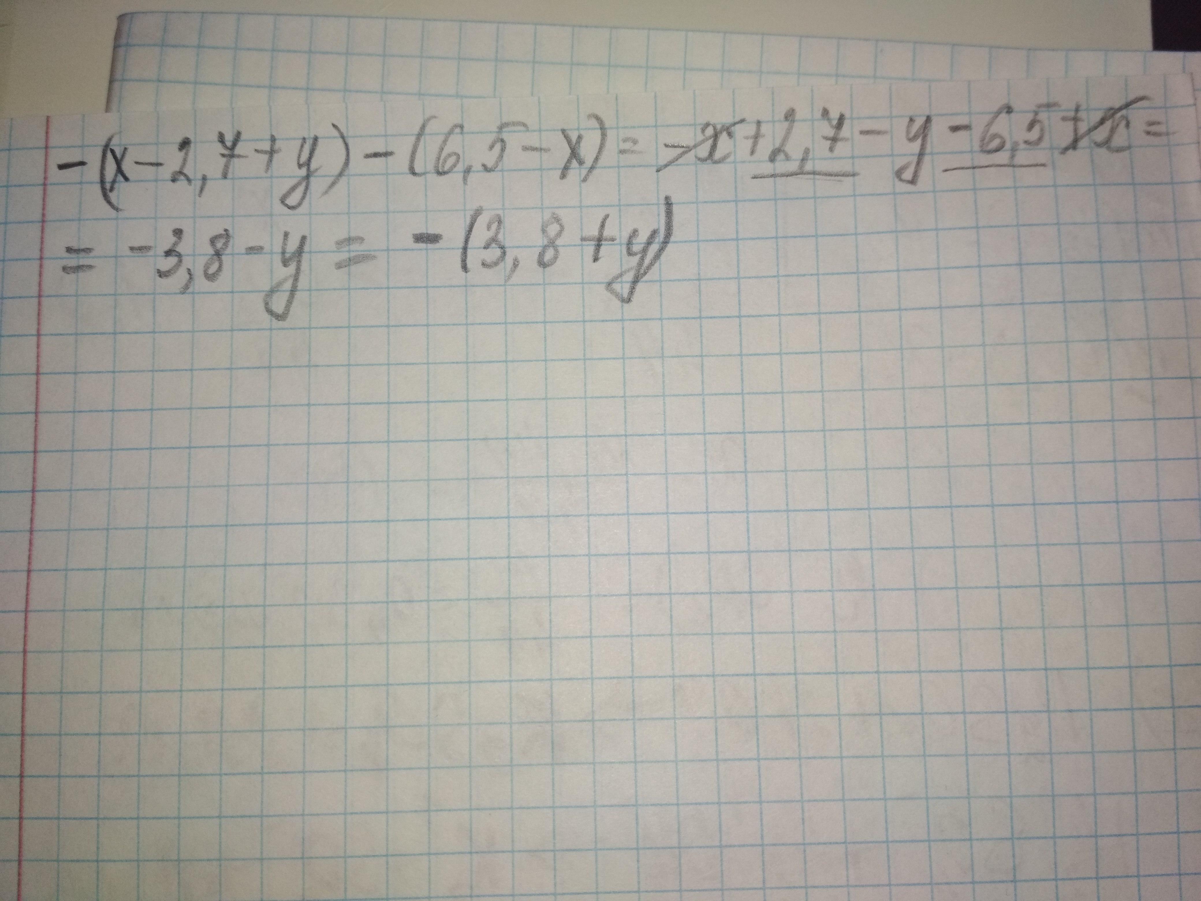 –(x-2,7+y)-(6,5-x)=-x+2.7-y-6.5+x=-3.8-y