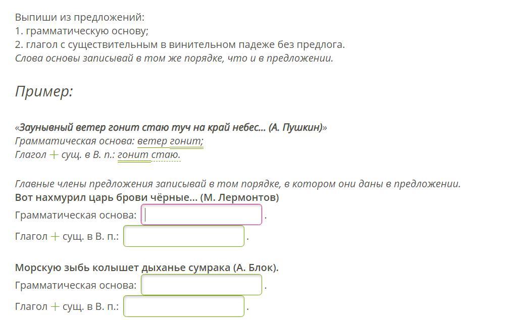 Глагол + сущ. в В.п: зыбь колышет.