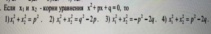 х1+х2=-р , якщо піднести х1 іх2 до квадрату , і -р до квадрату, отримаємо відповідь