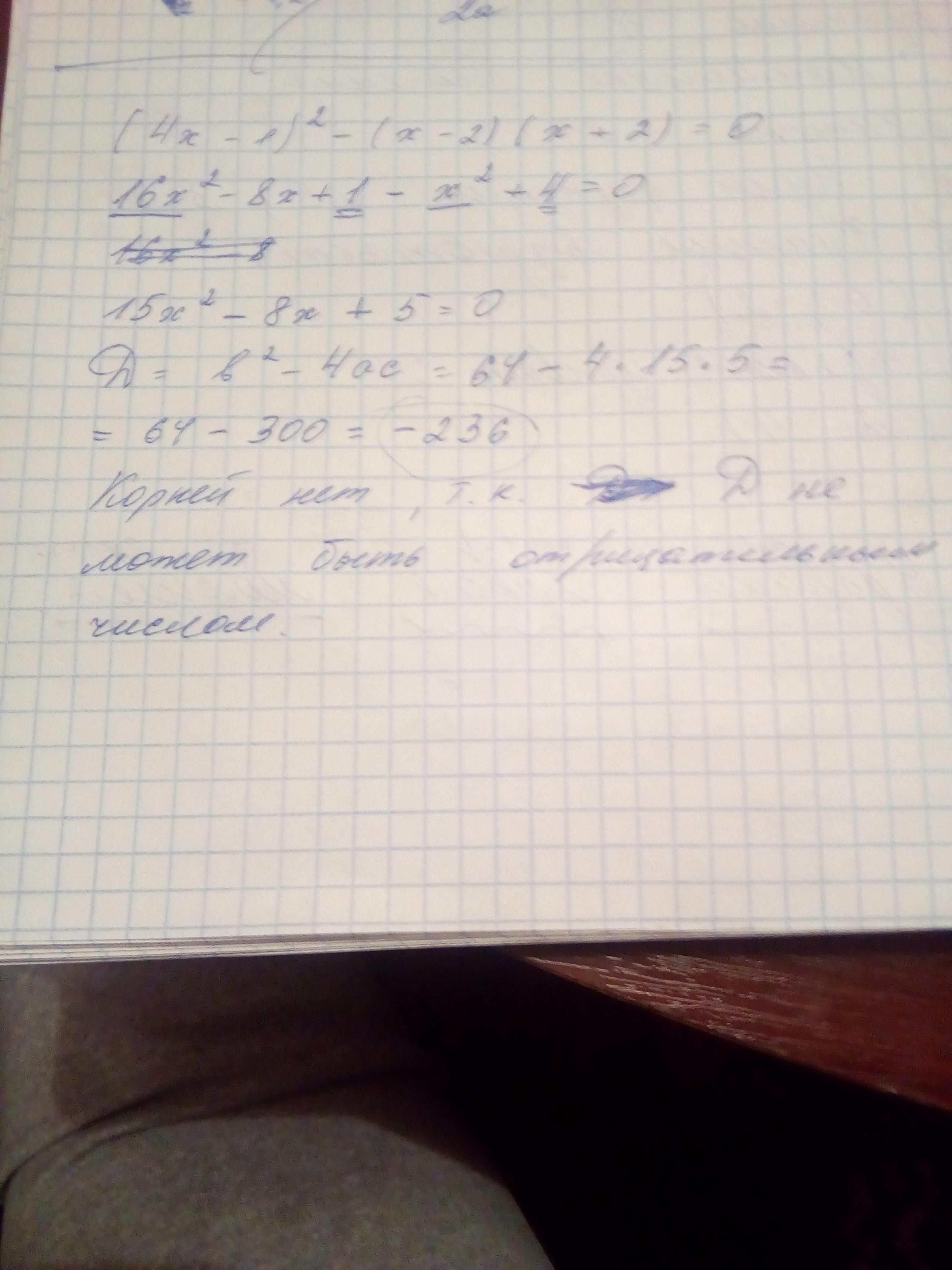 (4x-1)²-(x²-4)=0 ,D: (-∞; ∞ )