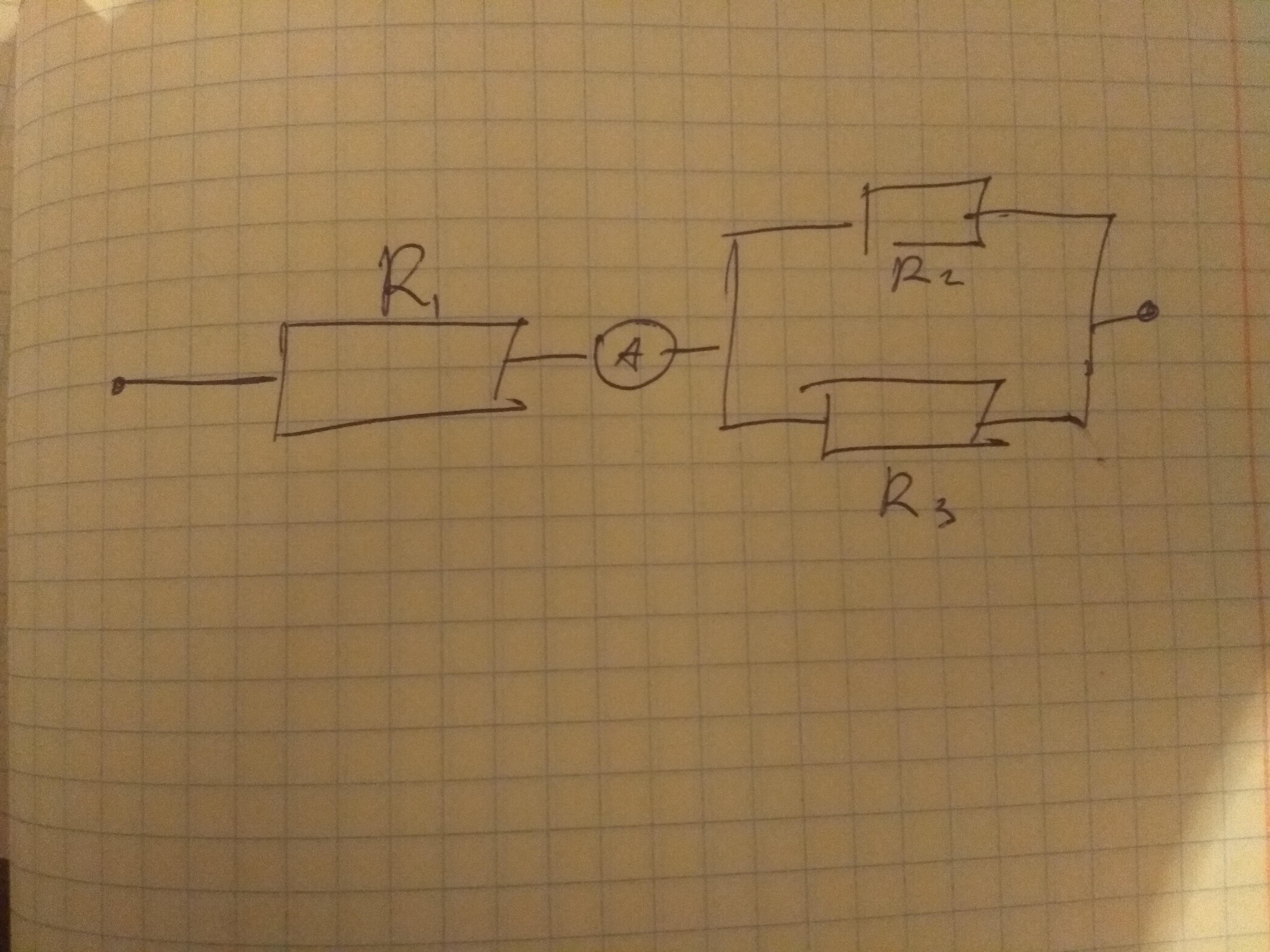 Найдите распределение между сопротивлением амперметр показывает 3А, R1=3 Oм, R2= 2Oм, R3=4 Oм.