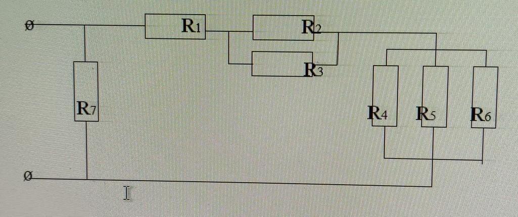Найдите общее сопротивление цепи, если R1 = 6,4 Ом, R2 = 4 Ом, R3 = 12 Ом, R4 = 6 Ом, R5 = 3 Ом, R6 = 8 Ом, R7 = 20 Ом.1. Найдите общее сопротивление цепи, если R1 = 6,4 Ом, R2 = 4 Ом, R3 = 12 Ом, R4 = 6 Ом, R5 = 3 Ом, R6 = 8 Ом, R7 = 20 Ом.