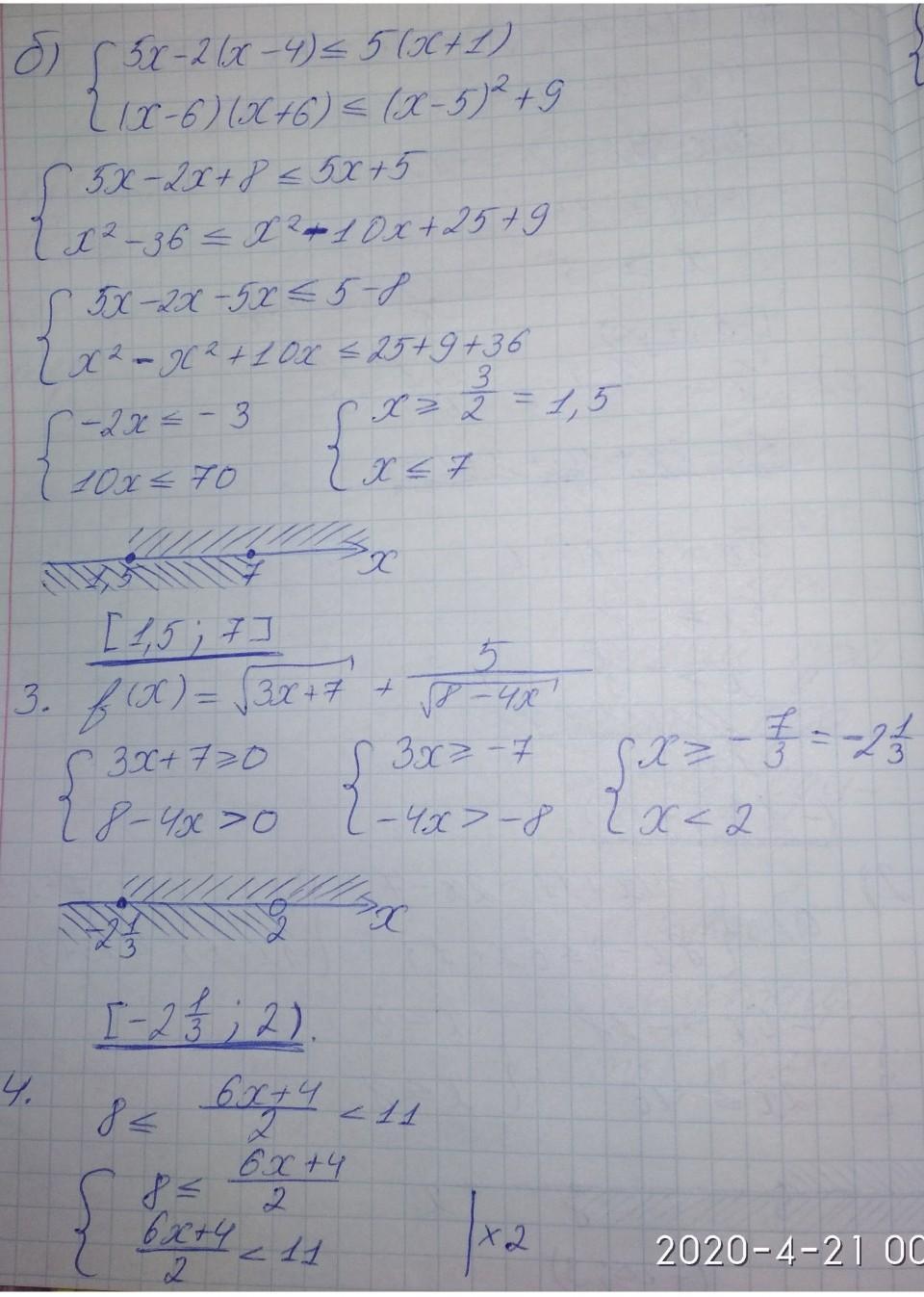 ДАЮ 100 БАЛЛОВ! умоляю, алгебра 8 класс. результат к каждому заданию/неравенства нарисуйте на числовой оси, ответ записать в виде числового промежутка.