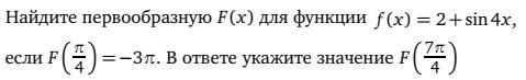 если F(π/4) = -3π . В ответе укажите F(7π/4) .