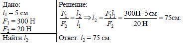 При равновесии рычага на его меньшее плечо действует сила 200 Н, на большее – 25Н. Длина меньшего плеча 5 см. Определите длину большего плеча. ( Весом рычага пренебречь.)