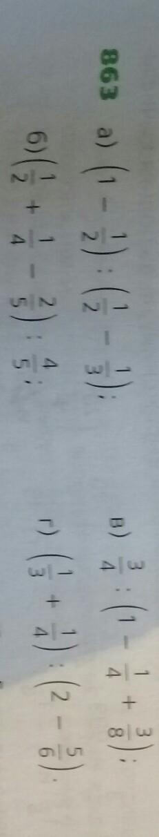 Ответ:а)... =(2/2-1/2):(3/6-2/6)=1/2:6/1=3