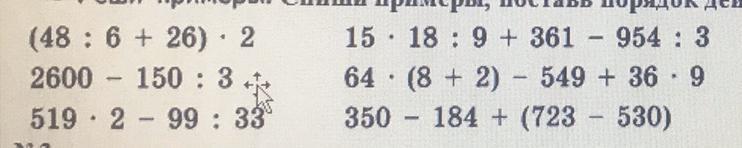 Думаю, во всех этих прмерах главная загвоздка в порядке действий. Первым делается умножение/ деление ( слева направо, т.е. по тому порядку, как они расположены) , а после уже сложение/ вычитание ( тоже слева направо, т.е. в том порядке в котором они расположены). Надеюсь, помогла. ;)