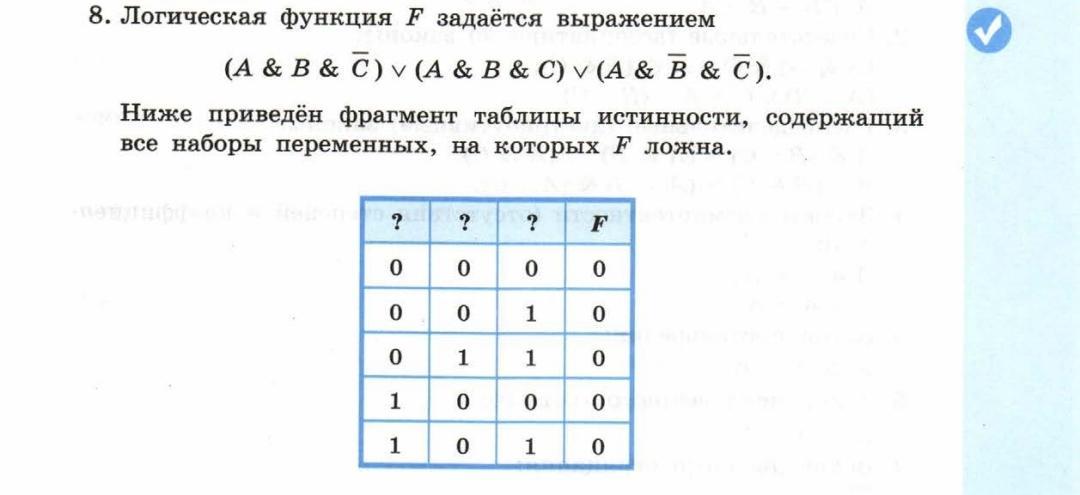 Какому столбцу таблицы истинности функции F соответствует каждая из переменных A,B,C?