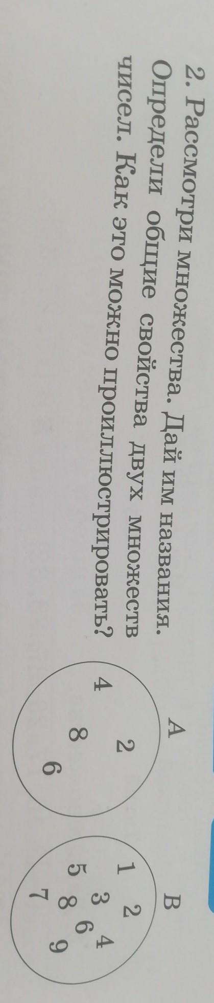 Рассмотри множества. Дай им названия. Определи общие свойства двух множеств чисел. Как это можно проилюстрировать?