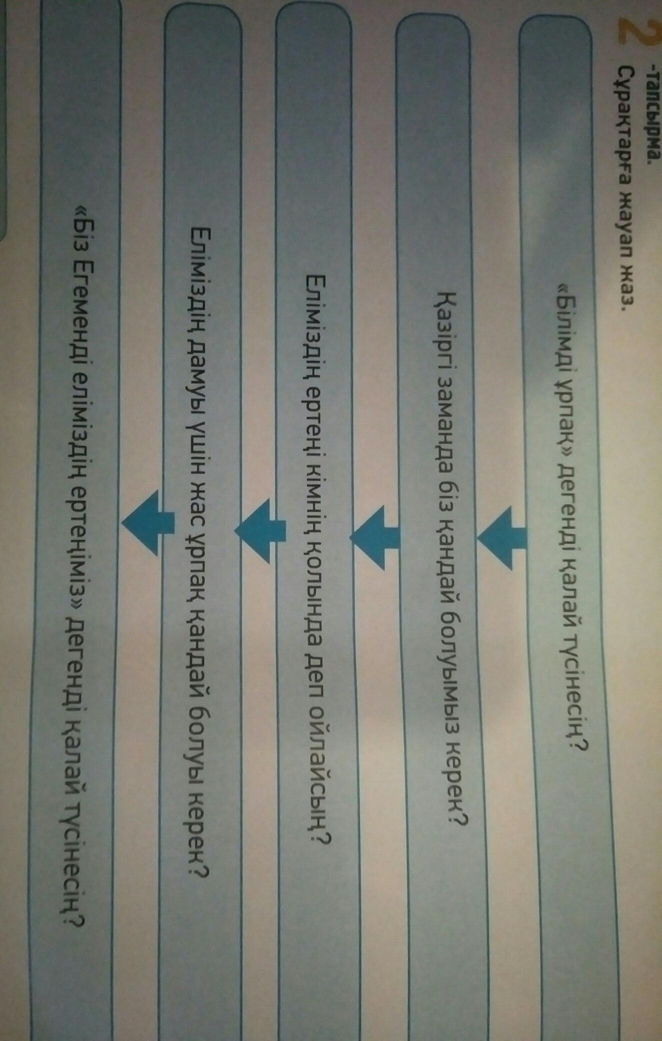 Білімді ұрпақ деп біз жастарды айтып отыр. Қазіргі заманда біз саналы әрі ешім қабылдай алатын бірбеткей болуымыз қажет. Еліміздің ертеңі біздің яғни жаңадан өсіп келе жатқан жастар мен жасөспірімдердің қолында. Еліміздің дамуы үшін жасөспірімдер бәріне дайын болу керек. Өзін және өзгені сыйлай алатын, сондай-ақ белсенді болу керек. Мағжан Жұмабаевтың өзі жастарға сенемін деп жырлаған. Еліміздің ертеңі әрине өсіп келе жатқан біз жас ұрпақпыз. Біздің елімізде, жерімізде, тілімізде, тарихымызда бізге аманат болып қалатын болған соң біз елдің ертеңі боламыз.