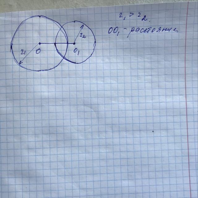 пересекались в двух точках. Отметь отрезком расстоянии