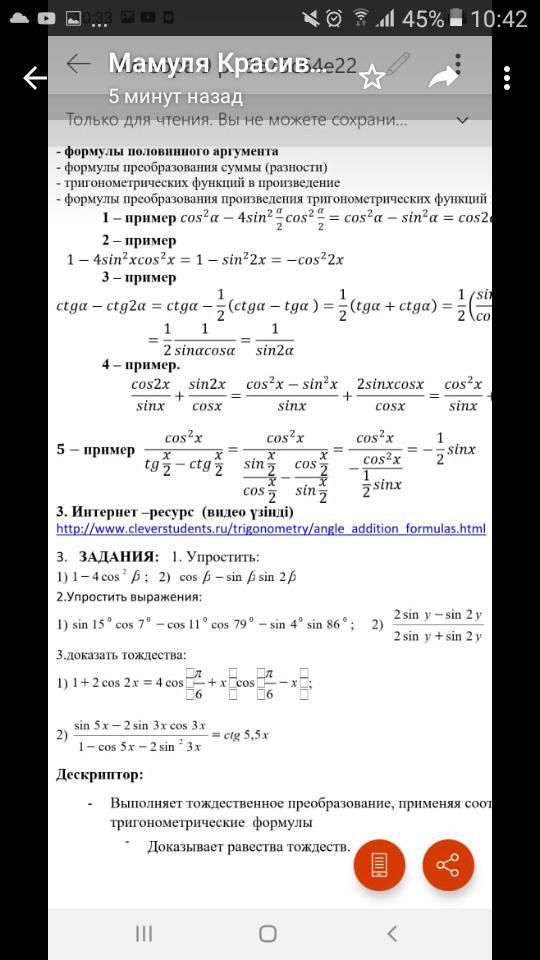 Доказать равенство тождеств,доказать их преобразование.Даю 20 баллов.