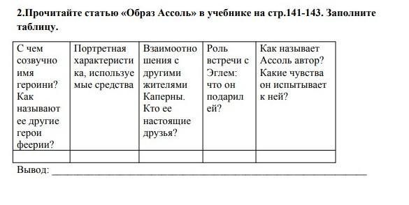 Прочитайте статью образ Ассоль Заполните таблицу​