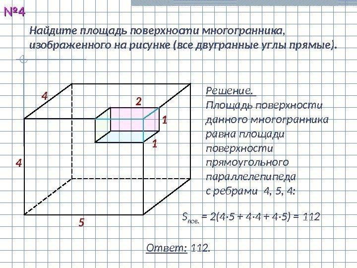 Найдите площадь поверхности многогранника, изображенного на рисунке.