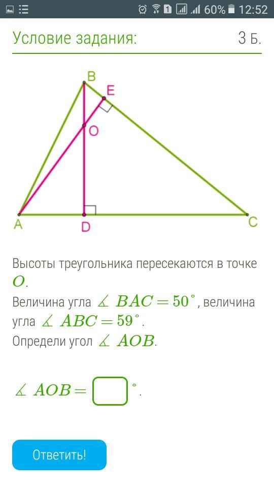 Величина угла ∡ BAC = 50°, величина угла ∡ ABC = 59°.