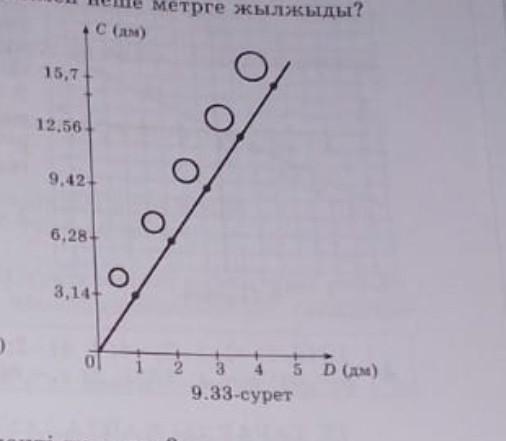 на рисунке 9.33 изображён график зависимости длины окружности (C) от ее диаметра (D)