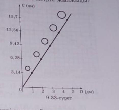 на рисунке 9.33 изображён график зависимости длины окружности (C) от ее диаметра (D)