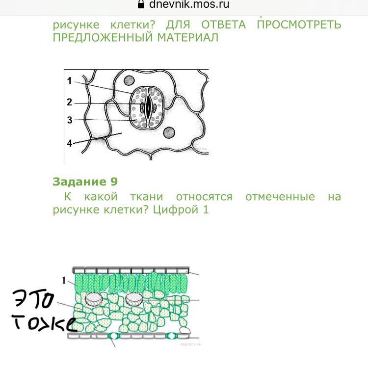 К какой ткани относятся отмеченные на рисунке клетки? Цифрой 1