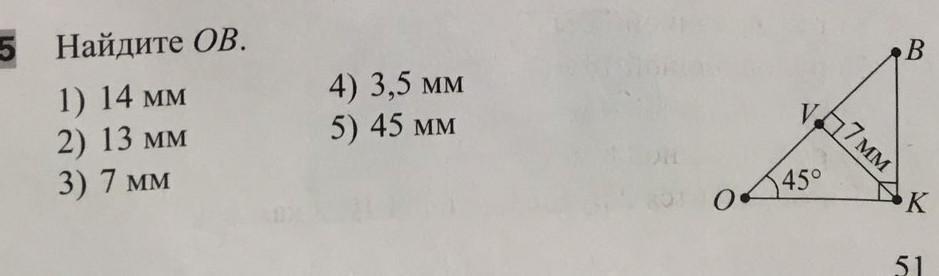 треугл OVK равнобедр, т.к угл OKV= 45 градусов , значит OV=7мм