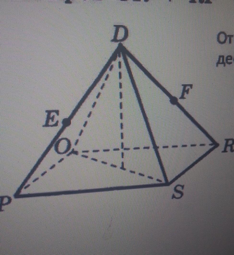 все ребра правильной пирамиды DPORS равны 6, точки E и F середины ребер DP,DR. Найдите длину вектора, равного сумме векторов OR+RF+FE