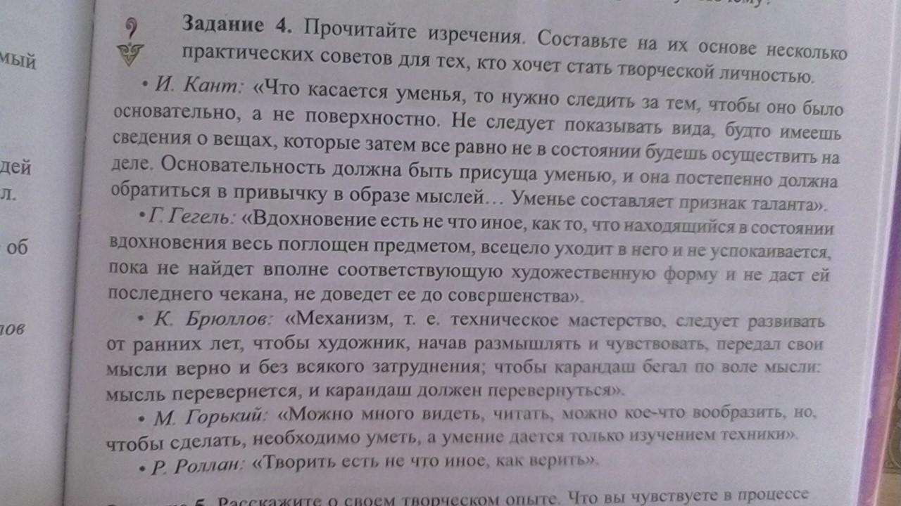 Задание 4 . Прочитайте изречения . Составьте на их основе несколько практических советов для тех кто хочет стать творческой личностью.