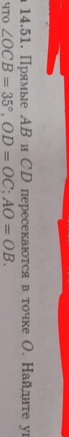 прямые AB и CD пересекаются в точке O. найдите угол ODA, если известно, что угол OCB равен 35 градусам, ODравно OC, AO равно OB
