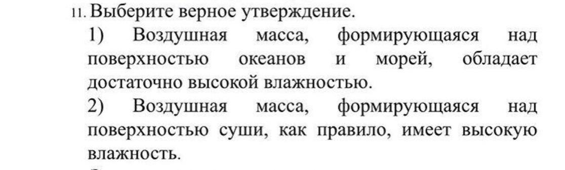 1) Воздушная масса,формирующаяся над поверхностью океанов и морей, обладает достаточно высокой влажностью.