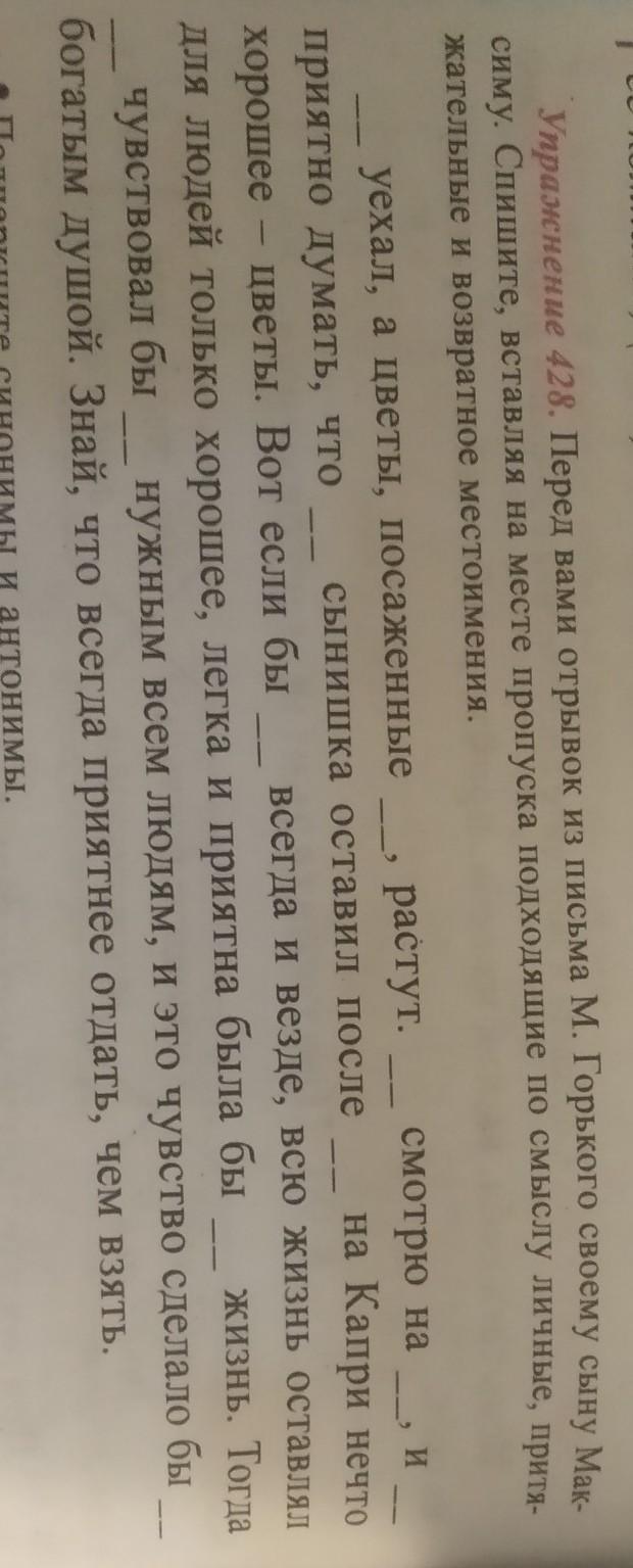 перед вами отрывок из письма м горького своему сыну максиму . спишите вставляя на места пропуска находящие по смыслу личные притяжательные и возвратное местоимения
