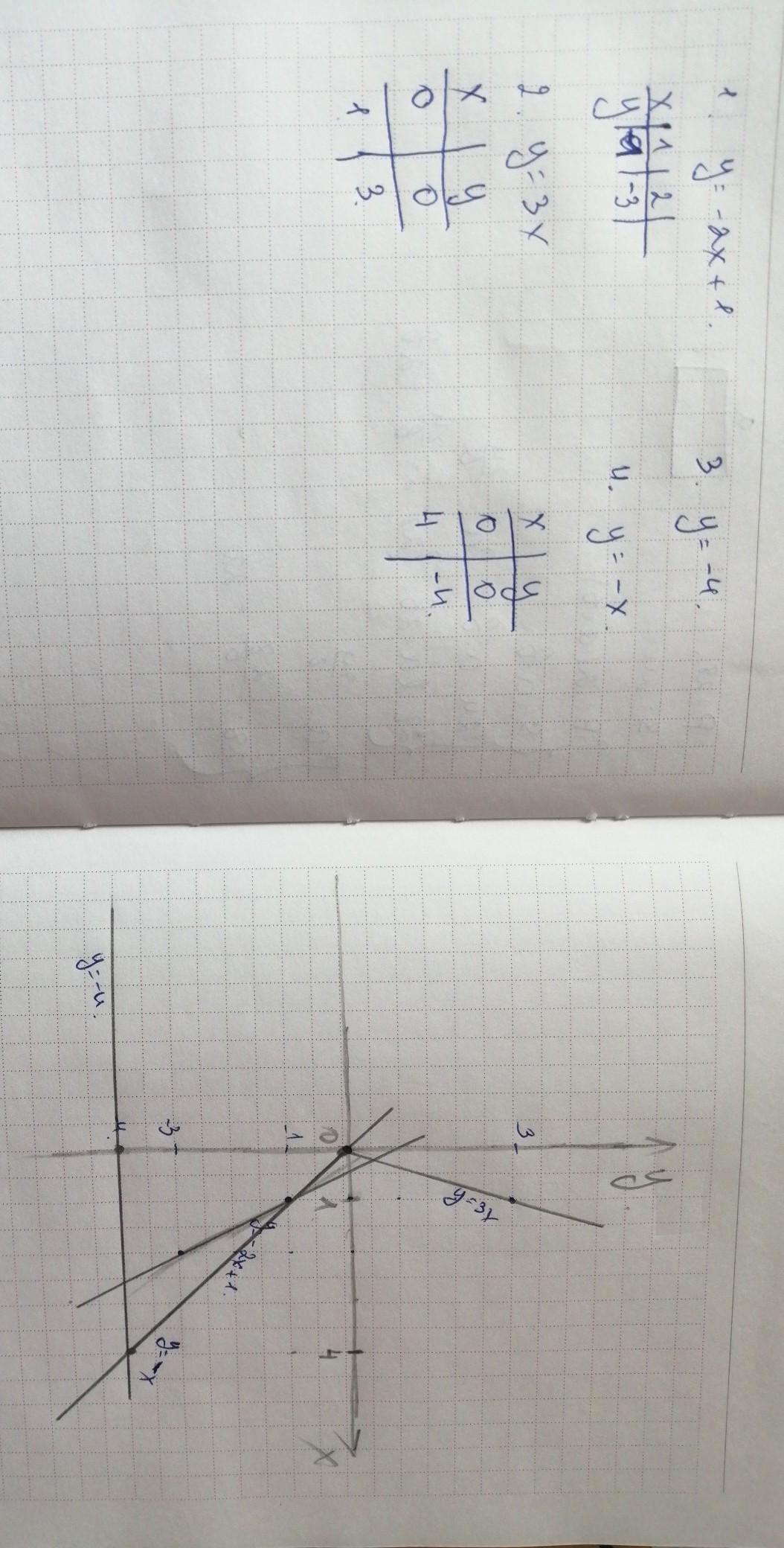 функций у= -2х+1 , у= 3х, у= -4, у= - х.