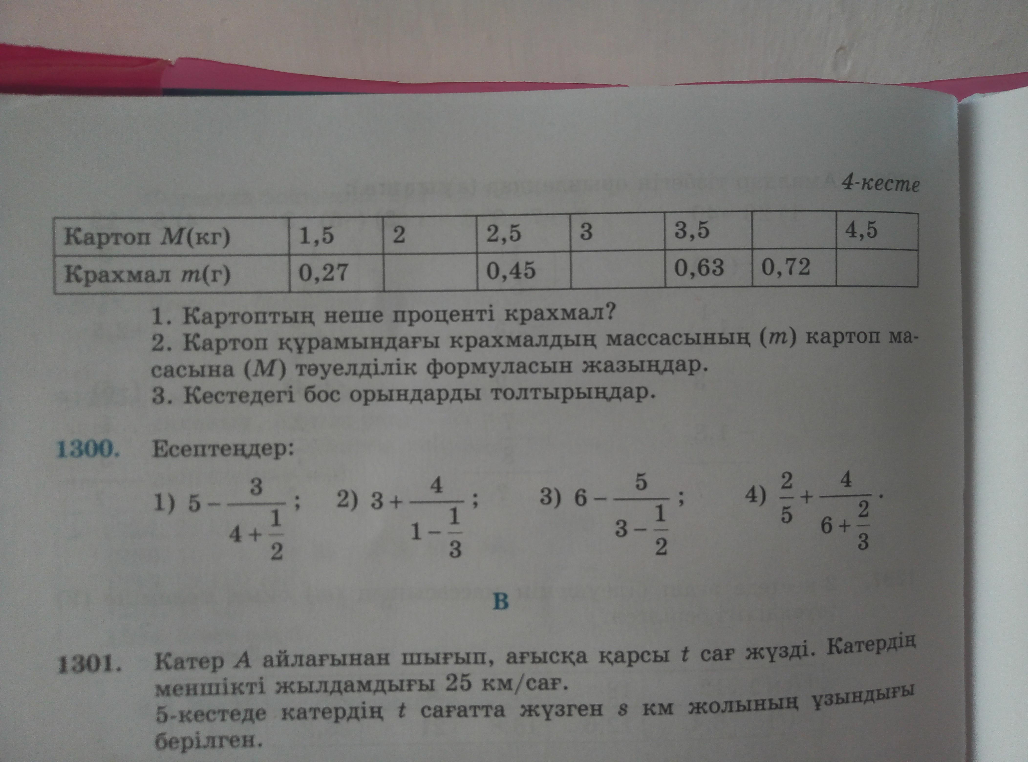 4-кестеде картоп құрамындагы крахмал массасының (m) картоптың массасына (M) тәуелдігі берілген