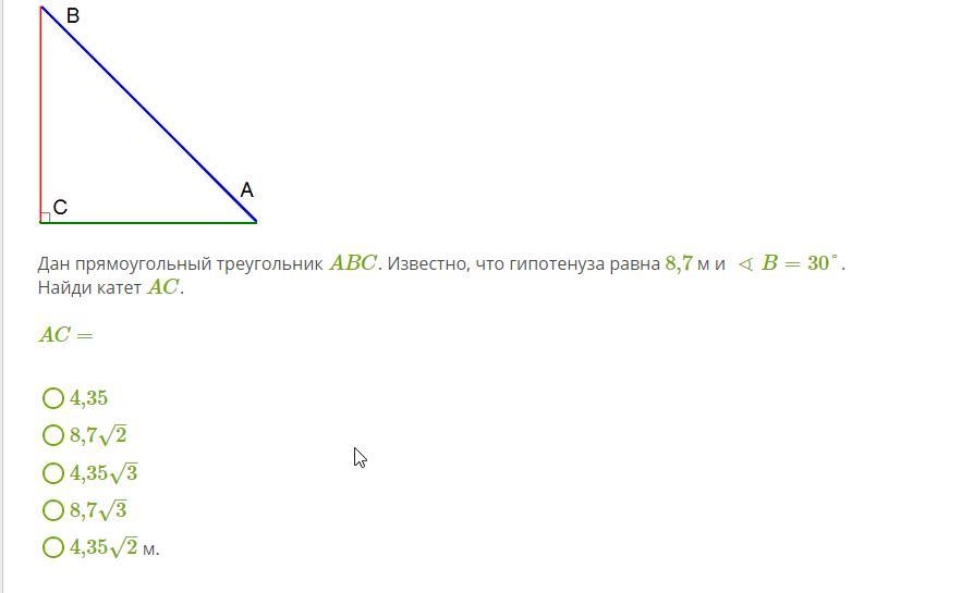 т.к. напротив угла в 30 градусов лежит катет равный 1/2 гипотенузы