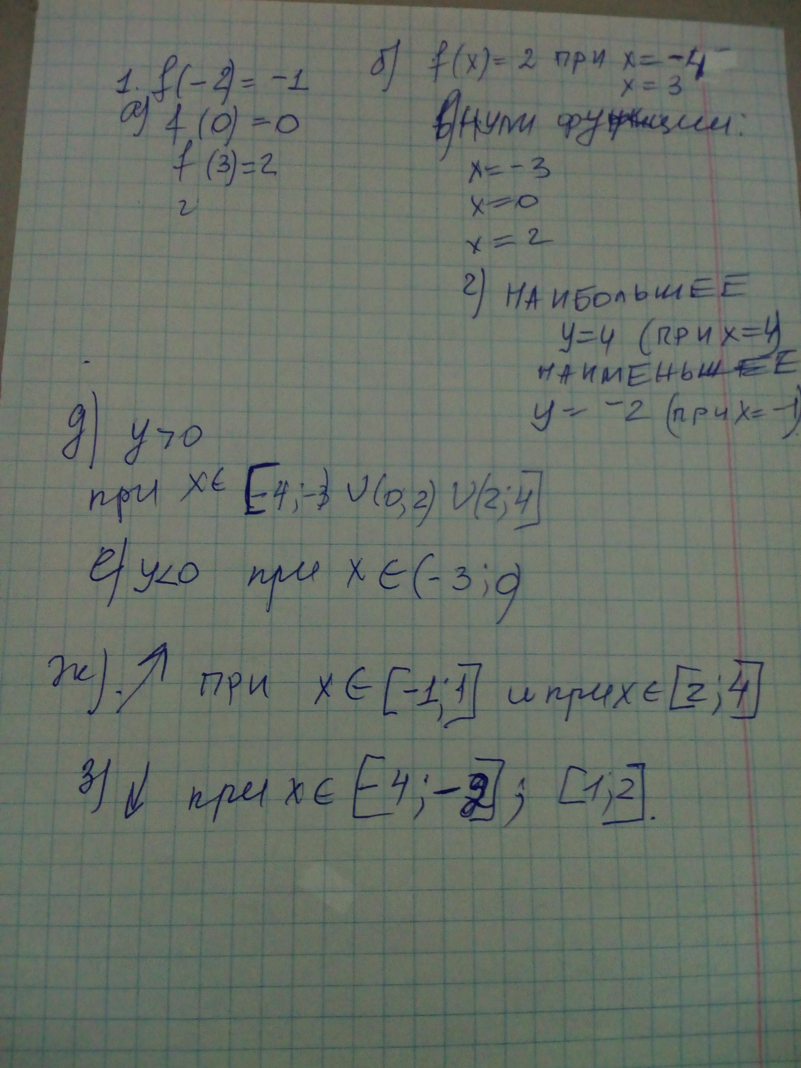 г) f(наименьшее)=f(-1)=-2 , f(наибольшее)=f(4)=4