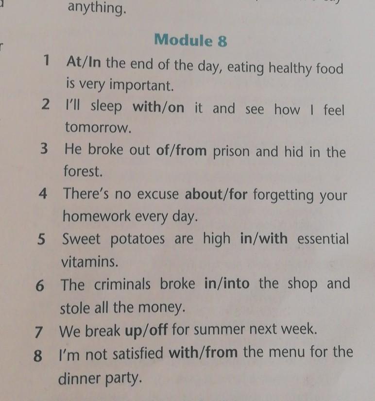 1 In. 2 On. 3 Of. 4 About. 5 In. 6 Into. 7 Up. 8 From
