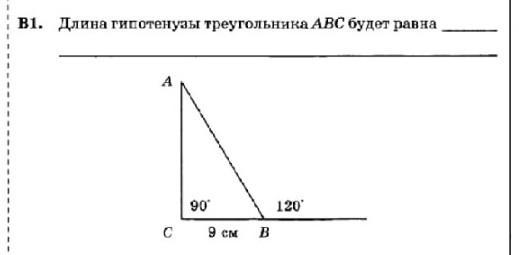 Длина гипотенузы треугольника ABC будет равна (...) (задание и рисунок треугольника на фото)