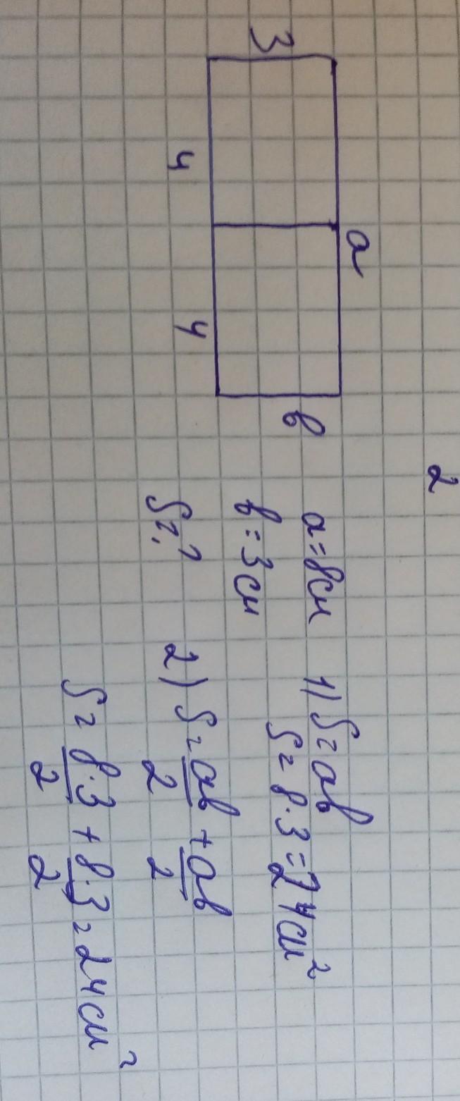 вычисли разными способами.Какие свойства умножения ты использовал. площадь прямоугольника а=8см и в=3см