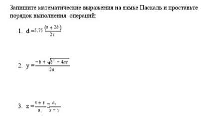 Для b во втором примере пославил степень 3, вроде как она указана, точнее не видно. Для возведения в степень использовалась функция power(b, 3). Если степень не 3, то необходимо изменить цифру в функции. Функция power работает в pascal abc, и может не работать в других компиляторах. Можно заменить на банальное перемножение b * b * b.