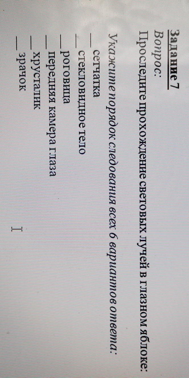 Последовательность прохождения лучей через прозрачную среду глаза такова: луч света → роговица → передняя камера глаза → зрачок → задняя камера глаза → хрусталик → стекловидное тело → сетчатка.