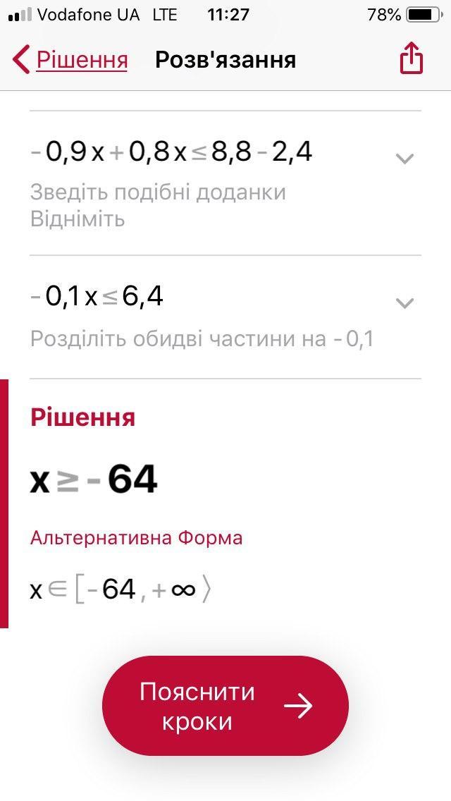 2,4 - 0,9х ≤ 3,2 - 0,8х + 5,6
