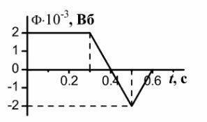СРОЧНО ПОЖАЛУЙСТА!На рисунке представлена зависимость магнитного потока,пронизывающего катушку,от времени.Чему равна ЭДС индукции на интервале от 0,3 до 0,5 с,если в катушке 400 витков?