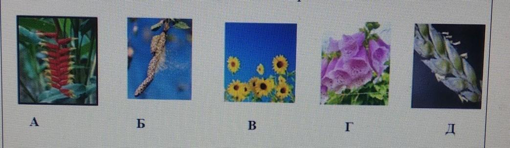 Ветроопыляемые растения под цифрами: А, Б, Д.