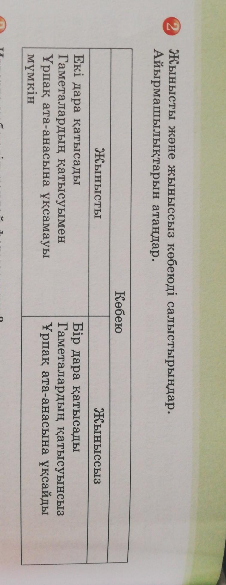 Жынысты және жыныссыз көбеюді салыстырыңдар. Айырмашылықтарын атандар