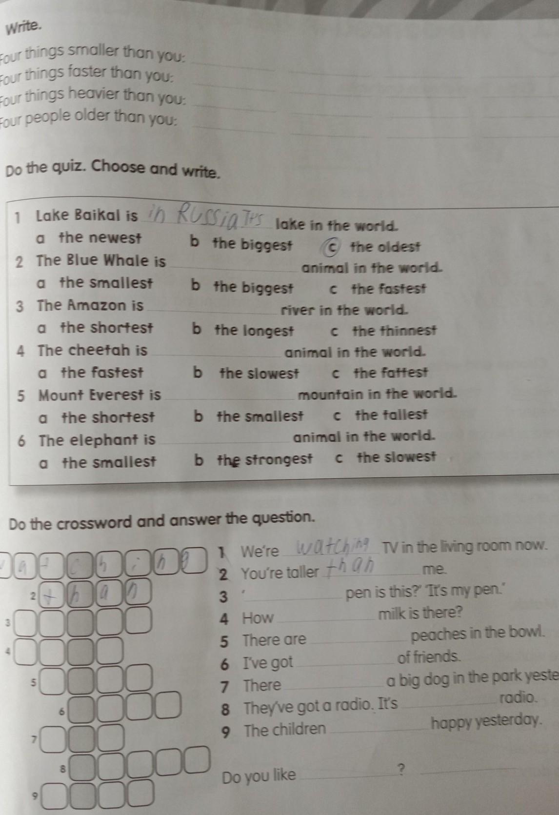 Do the quiz. Choose and write: