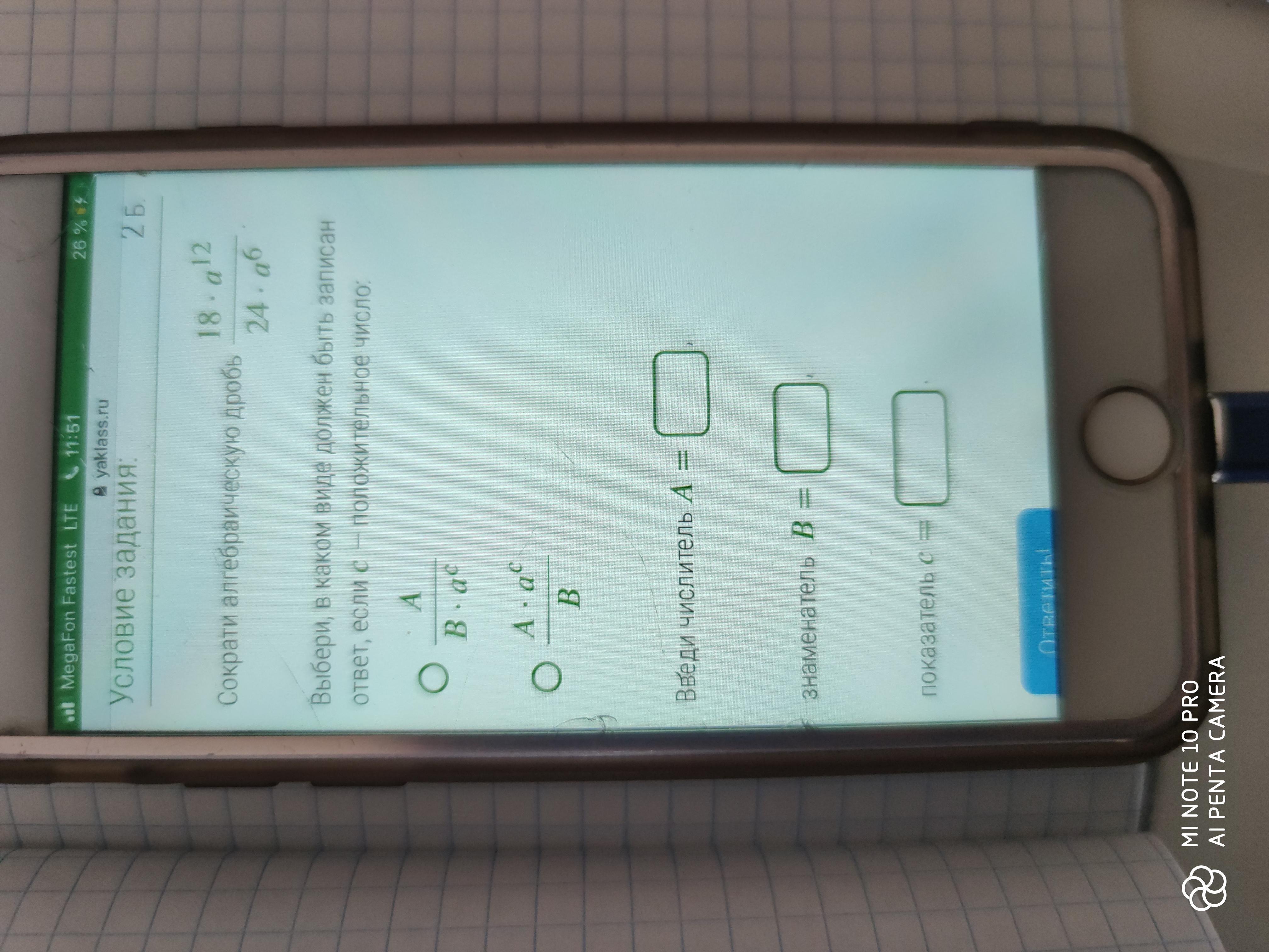 Пошаговое объяснение:18 и 24 делится на 6, получается 3 и 4. Степени 12 и 6 вычитаются