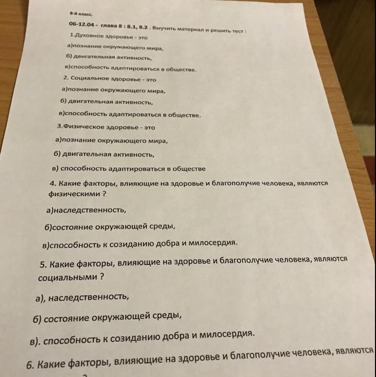 6-какие факторы, влияющие на здоровье и благополучие человека,являются духовными?