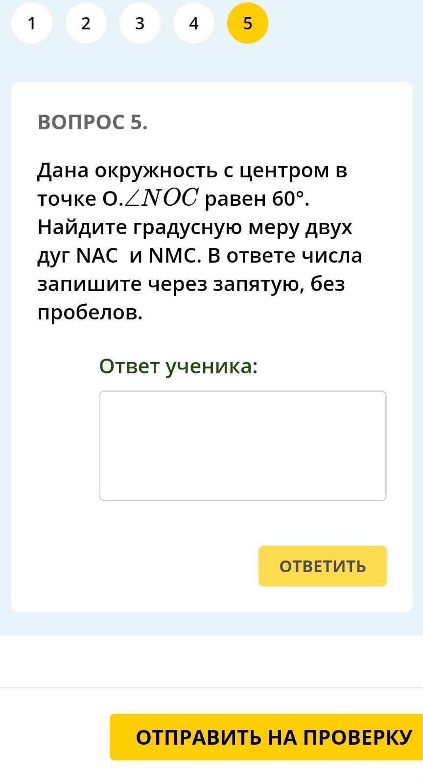 Пусть ∪NAC=60°, тогда дуга NMC=360°-60°=300°