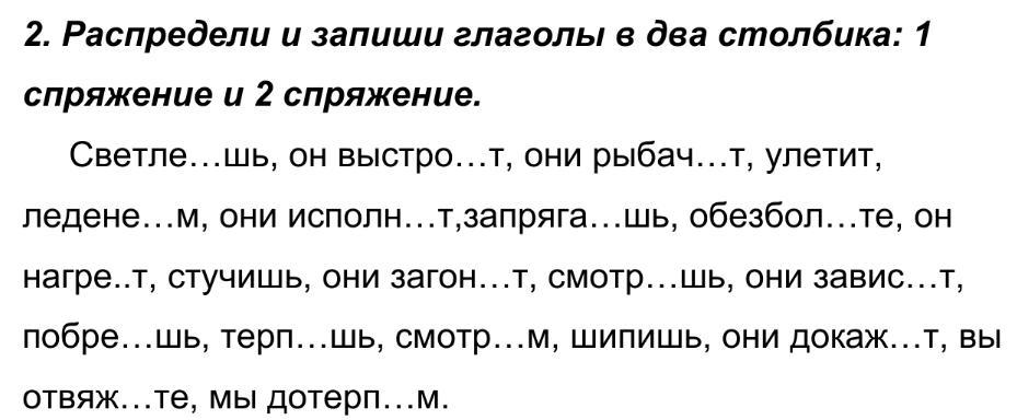2. 1 спряжение: светлеешь, улетит, леденеем, запрягаешь, нагреет, стучишь, побреешь, шипишь, докажут, отвяжете.