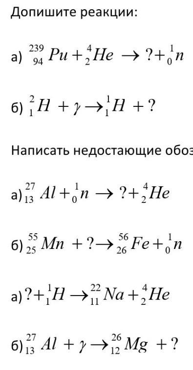 допишите реакции
